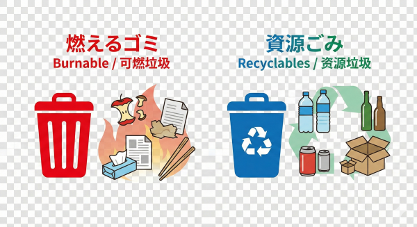 ゴミは「燃えるゴミ」と「ペットボトルや缶」など資源ごみとに分けて頂けると幸いです。