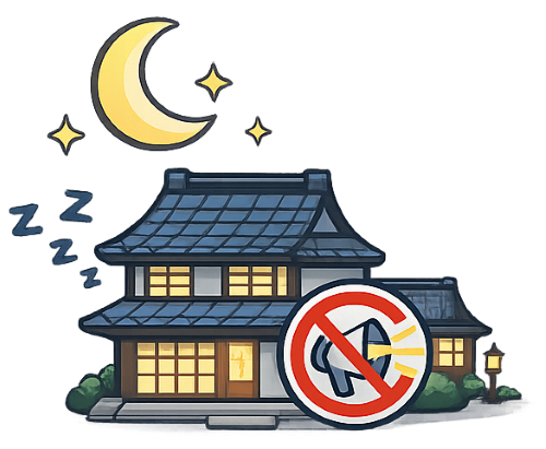 ・当施設は住宅街にあります。近隣住民の方のご迷惑になるような事はお断りしております。もし近隣から苦情があった場合は退室をお願いする事がございますのでご注意ください。