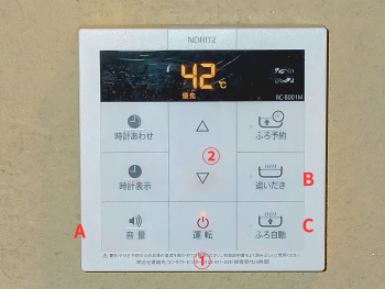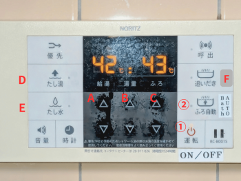 A Water Supply TemperatureB Water Amount / 出水量C Bath Temperature / 浴缸温度D Add Hot Water / 加热水E Add Cold Water / 加冷水 F Reheat (Bath) / 热水再加热