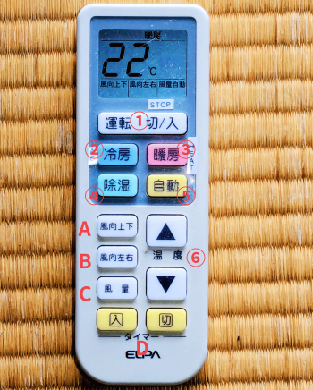 ① Power / 电源② Cooling / 制冷③ Heating / 制热④ Dehumidify / 除湿⑤ Temperature / 温度